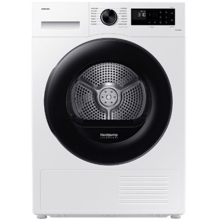 מייבש כביסה פתח חזית HeatPump קונדנסור 9 ק"ג Samsung SmartThings DV90DG52A0AE – צבע לבן דלת שחורה