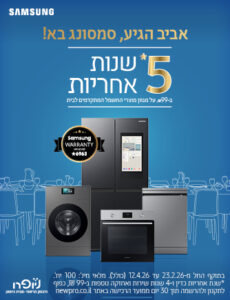 אחריות לשלוש שנים ע"י סמסונג ישראל היבואן הרשמי