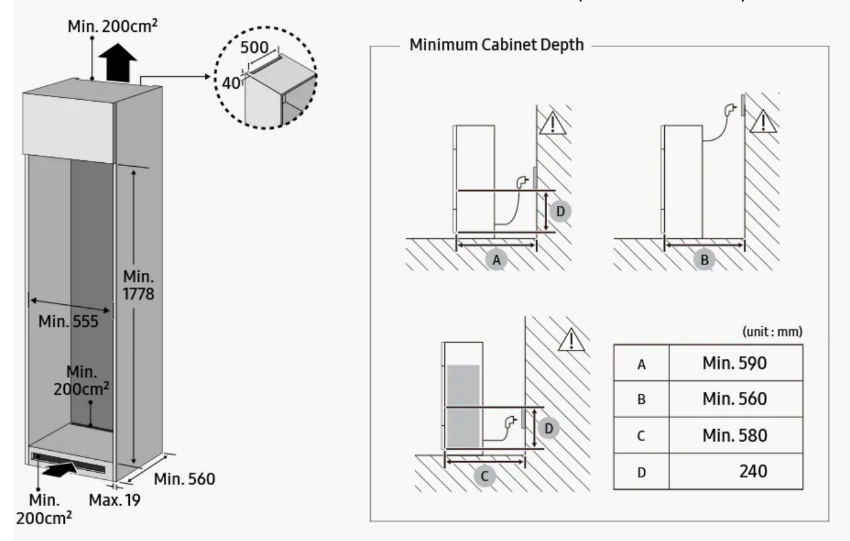 מקפיא אינטגרלי 5 מגירות – 220 ליטר Samsung סמסונג BRZ227205WW